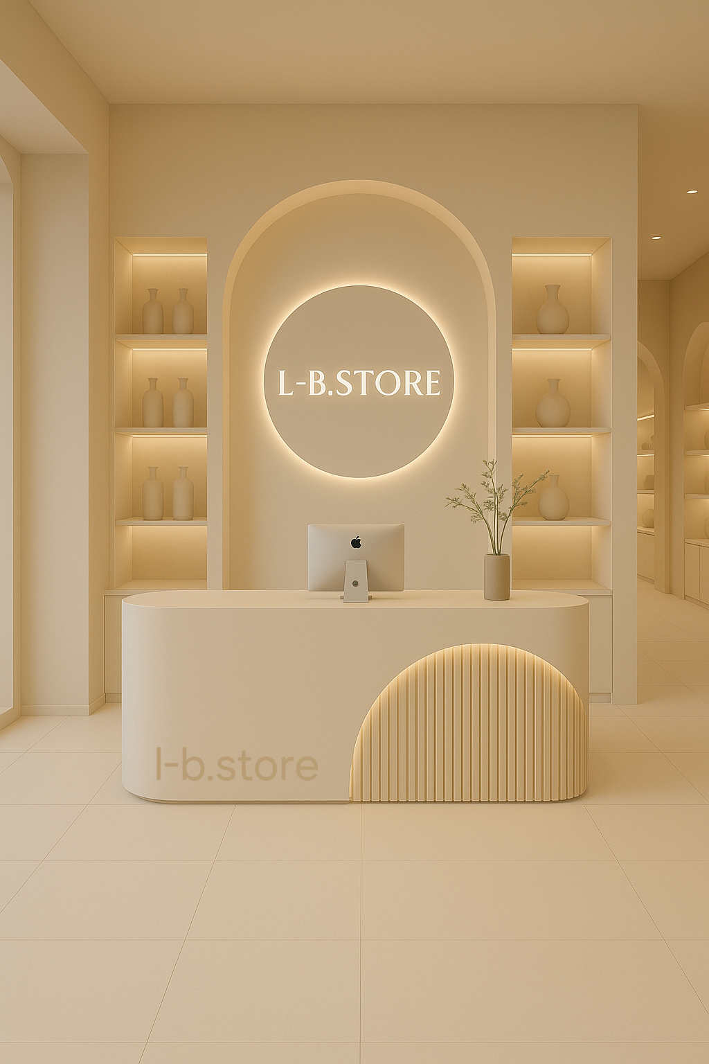 ✔ Detal: podświetlane lamele w półkolistym wycięciu To idealne rozwiązanie dla nowoczesnych salonów beauty, klinik, butików oraz biur, w których liczy się elegancja, spokój i harmonia formy.