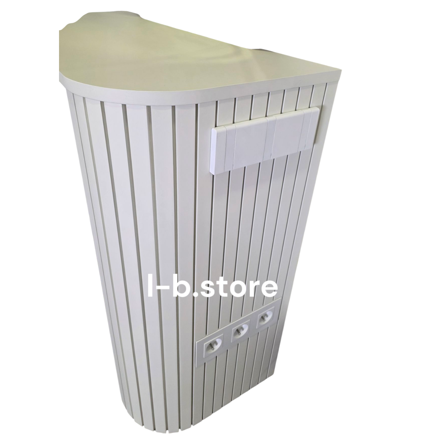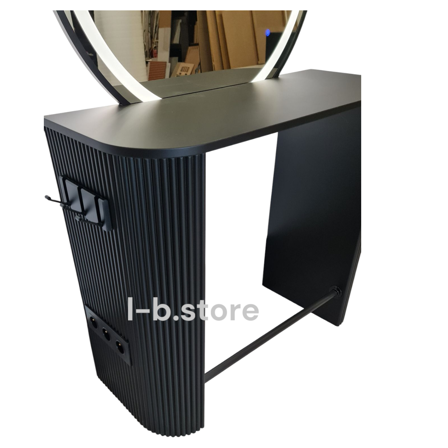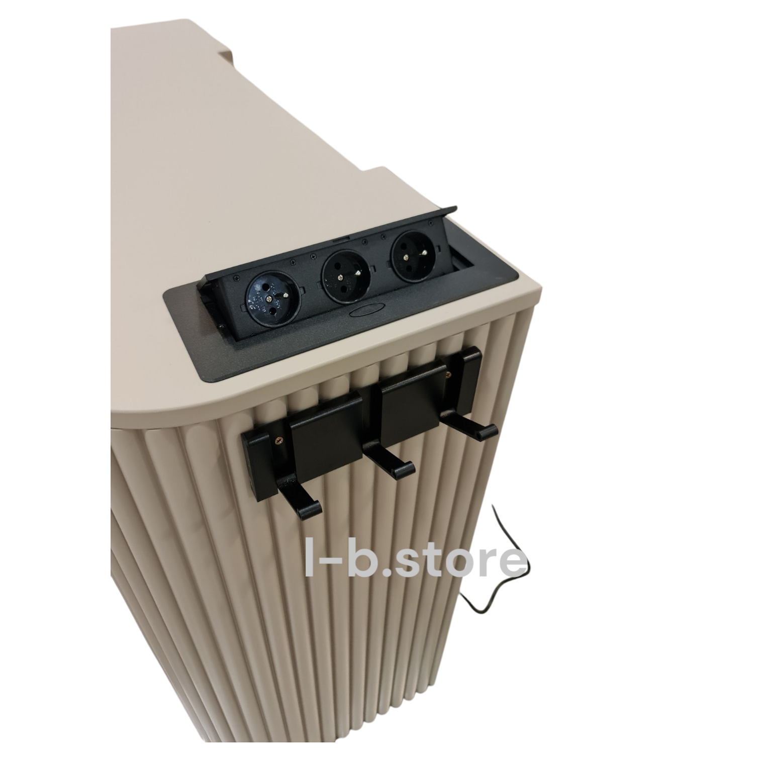 Praktyczne rozwiązania – wbudowane potrójne gniazdko (do wyboru: nablatowe lub boczne), a także haczyki na akcesoria (np. suszarkę, prostownicę).
