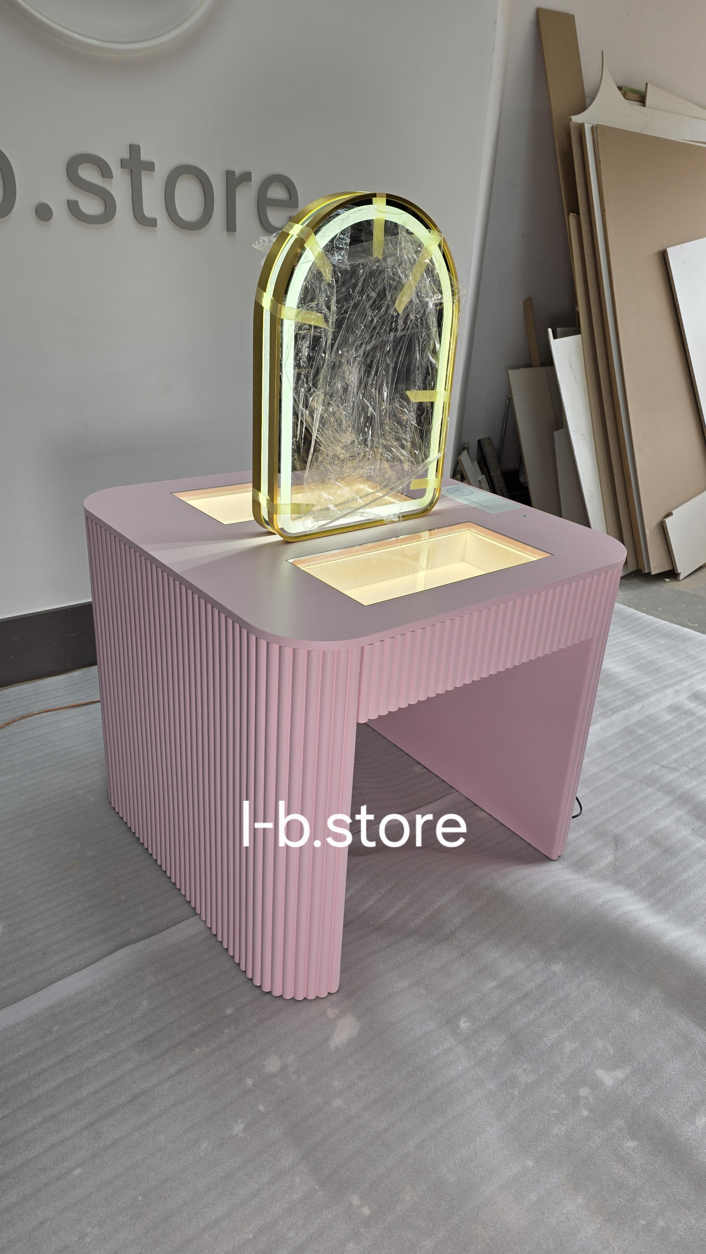 Ta wyjątkowa toaletka została zaprojektowana z myślą o profesjonalnych salonach fryzjerskich, beauty oraz makijażu. Jej unikalny design łączy w sobie nowoczesne ryflowane wykończenie, zaokrąglone rogi oraz podświetlane lustro LED, które gwarantuje perfekcyjne oświetlenie podczas każdej stylizacji.